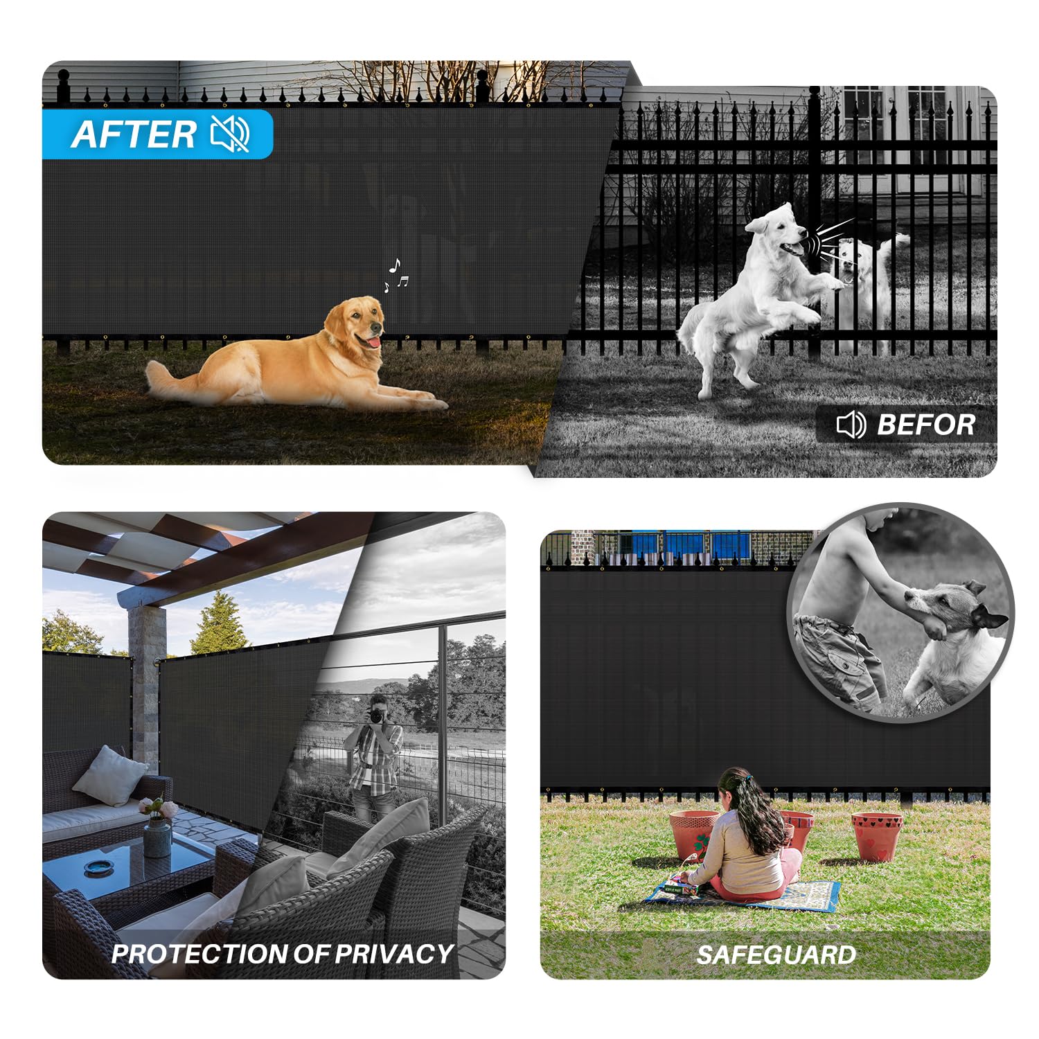 Patio 4 x 12 Fence Privacy Screen Black Commercial Grade Mesh Shade Fabric with Brass Gromment Outdoor Windscreen with Zipties