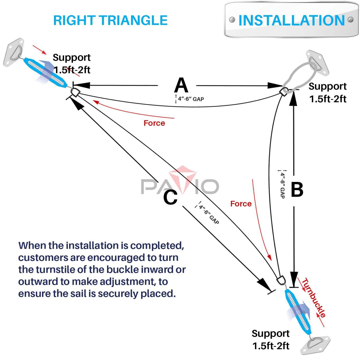 - Important Note: Curved sides to increase pull and prevent sagging, which can add 1"-8" to the side length. The middle center of the sail will be shorter in width due to curves. If you prefer straight edges, please contact us.